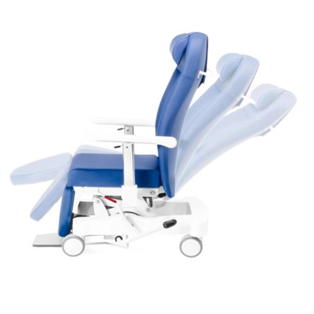 Kombinált ülésdöntési rendszer, amely a beteget „nulla gravitációban” tartja, elkerülve a nyomást az ágyéki régióban, az ülésben és a lábtartóban