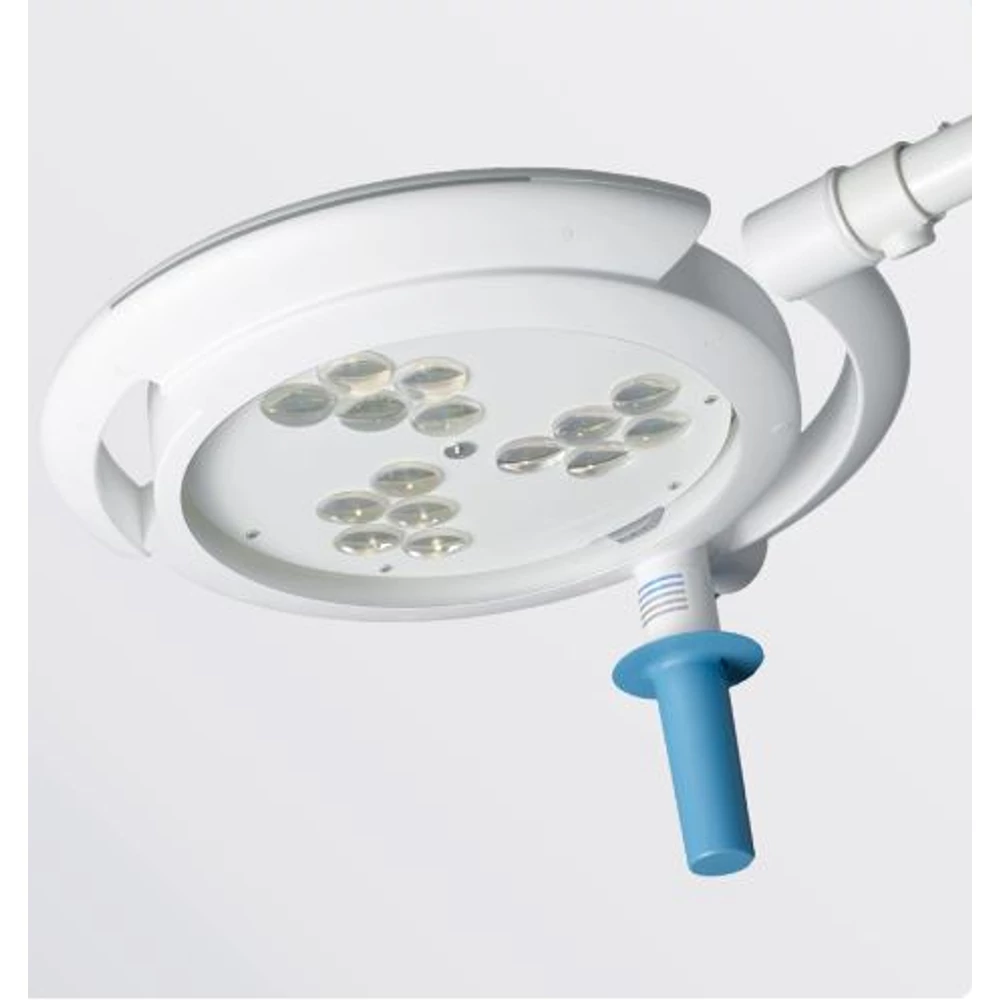 A lámpa bekapcsolásához és a fényerő szabályozásához egyszerűen csak el kell forgatni a kék színű steril fogantyút.