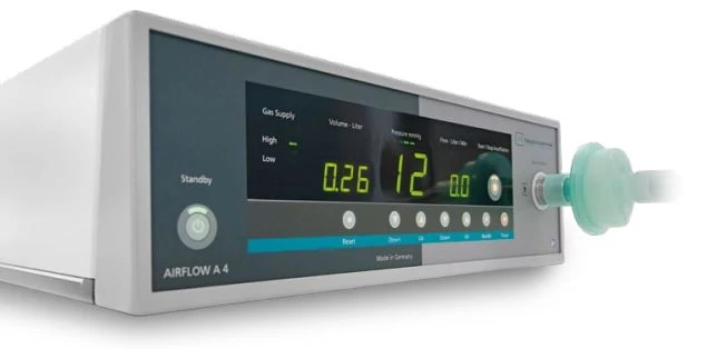 - Pre-inszufflációs mód: Kifejezetten a műtét elején, Veress-tűvel történő első hasi feltöltéshez optimalizált üzemmód a maximális betegbiztonság érdekében.